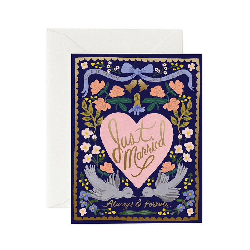 Celebrate the happy couple on their special day with the avian charm and floral warmth of Rifle Paper Co.'s Love Birds Greeting Card.
