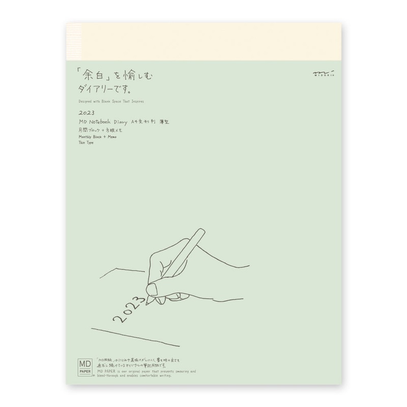 The "MD Notebook Diary Thin" is a slimmer version of the "MD Notebook Diary," which was designed to be as slim as possible in order to combine the original diary functions with the pleasure of writing freely, with only monthly pages and memo space.The rule
