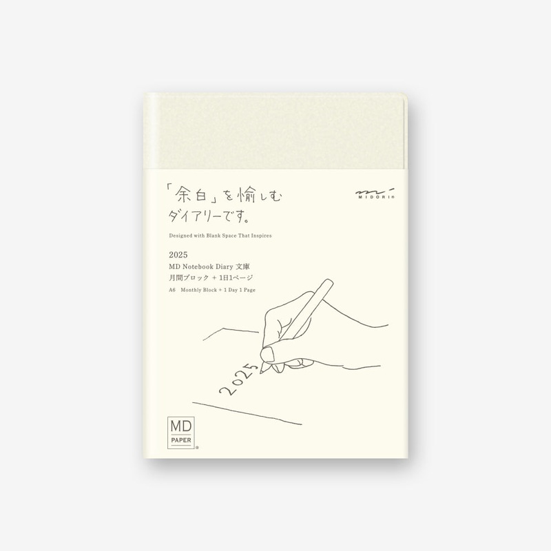 MD Notebook Diary 1Day 1Page - 2025 - A6This diary combines a block-type monthly schedule with 385 pages of free space.The free pages are designed to be customized to suit your style.On the daily pages, times from 8:00am to midnight are written down the le