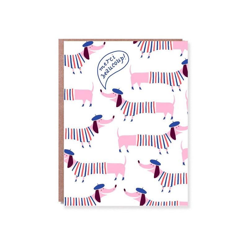 Add a continental touch to your thank you note with the Parisian Merci Frenchie card from Hello!Lucky.