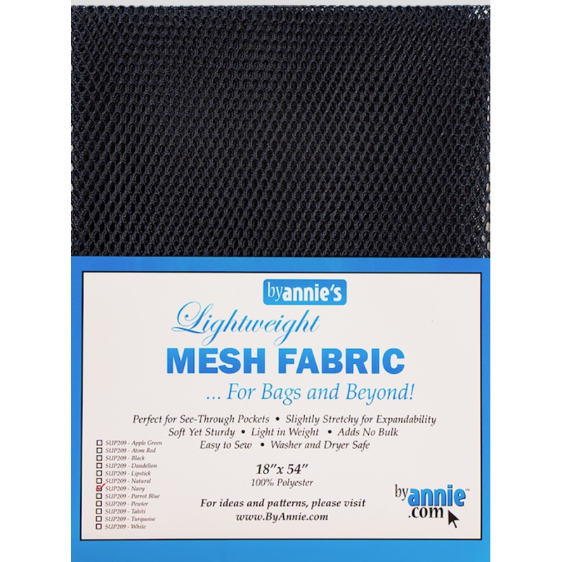 Lightweight and a bit stretchy, this mesh is fabulous! Perfect for pockets on bags or anywhere you want to be able to see what you are storing, the mesh works well in various garment/utility applications. The mesh is specially coated to be less slippery and easier to work with, while remaining soft and pliable!Finish edges with a simple binding using your favorite fabric or try our extra-easy-to-use fold-over elastic to provide extra stretch. Each package contains 1/2 yard (18 inches x 54 inches) and is enough for numerous small projects. 100% polyester. Washer and dryer safe. May be pressed on medium heat. PDF TUTORIAL Available in fourteen colors that match our best-selling Handbag Zippers.