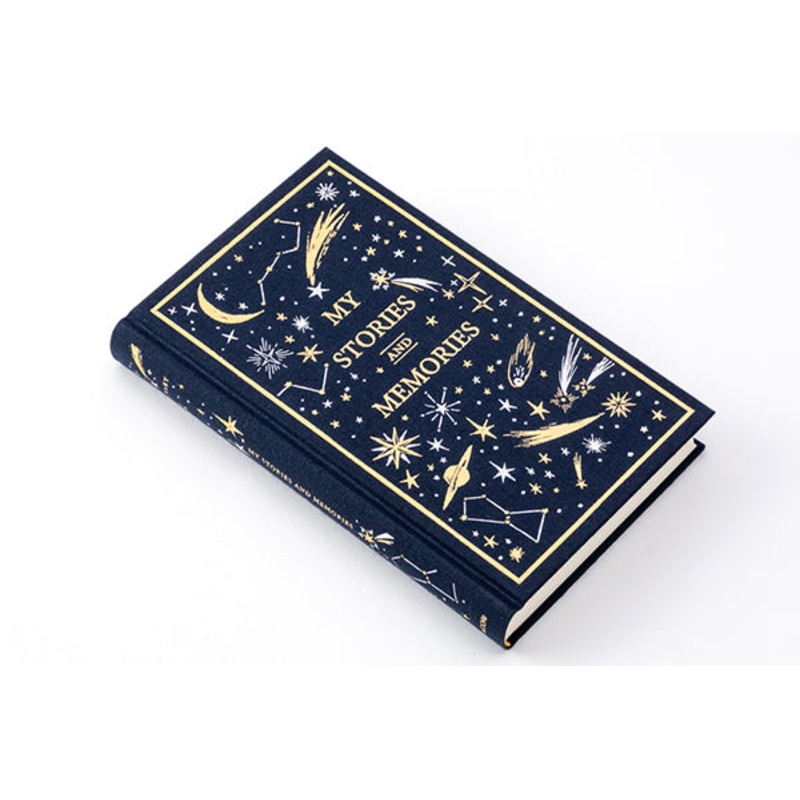 TheMidori 1 Day Per Page Diary – Hardcover Storybook is aone-page-a-day diary in thedesign of a Western-style night time storybook, with a fabric cover embellished with foil. This diary contains 368 pages for you to write on once a day throughout the year, but it is undated for you to write whenever inspiration strikes.The diary is filled with “MD paper” for a good writing experience and is fountain pen friendly. This hardcover book will blend in nicely to a bookshelf once finished, so it is the perfect place to record your own stories and memories as written on the front cover.