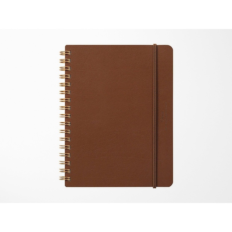 Notebook with recycled leather cover manufactured in Valencia, Spain. Its sheets, made of excellent Japanese MD paper, have two designs; Half are white ruled pages and the other half are smooth beige pages. Double ring brass binding and elastic closure.