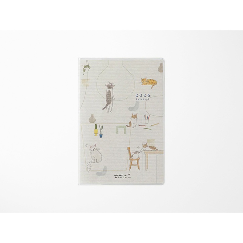 The Midori 2026 Pocket Diary Mini – Cat is a pocket-sized diary with a monthly block layout, dated January 2026 March 2027. With charming cat illustrations by Sayo Koizumi. The Mini size is lightweight and easy to carry with you.