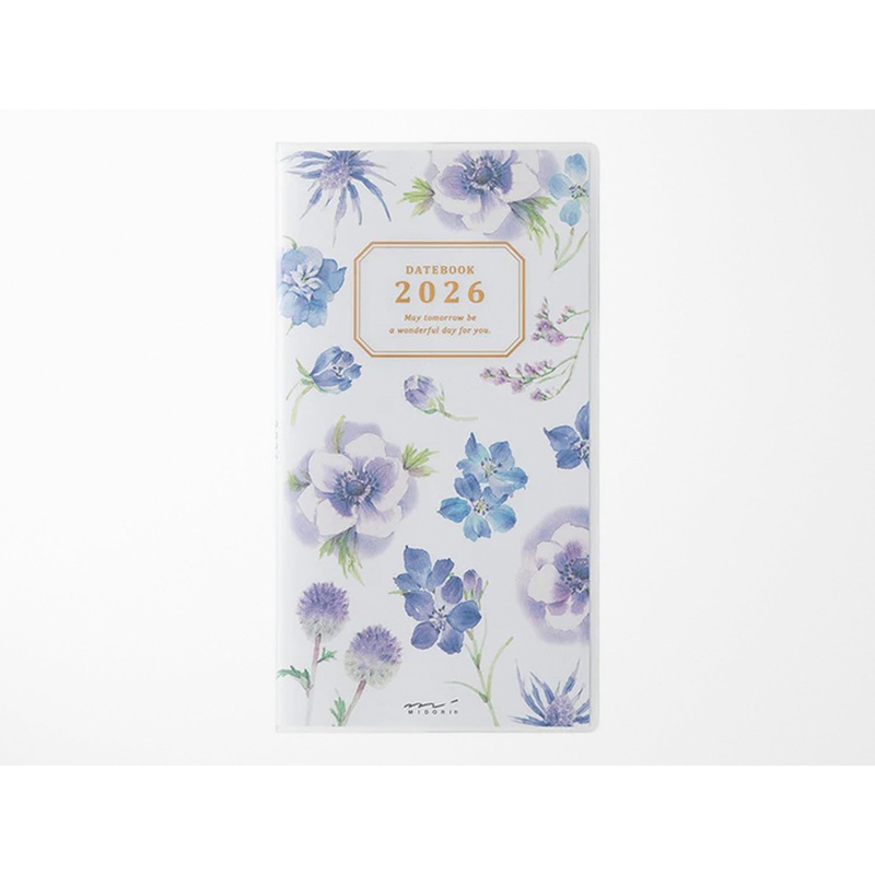 The Midori 2026 Pocket Diary Slim – Country Time Flower is a pocket-sized diary with a monthly layout, dated January 2026 March 2027. Features seasonal flower illustrations throughout. The slim size is lightweight and easy to carry with you.
