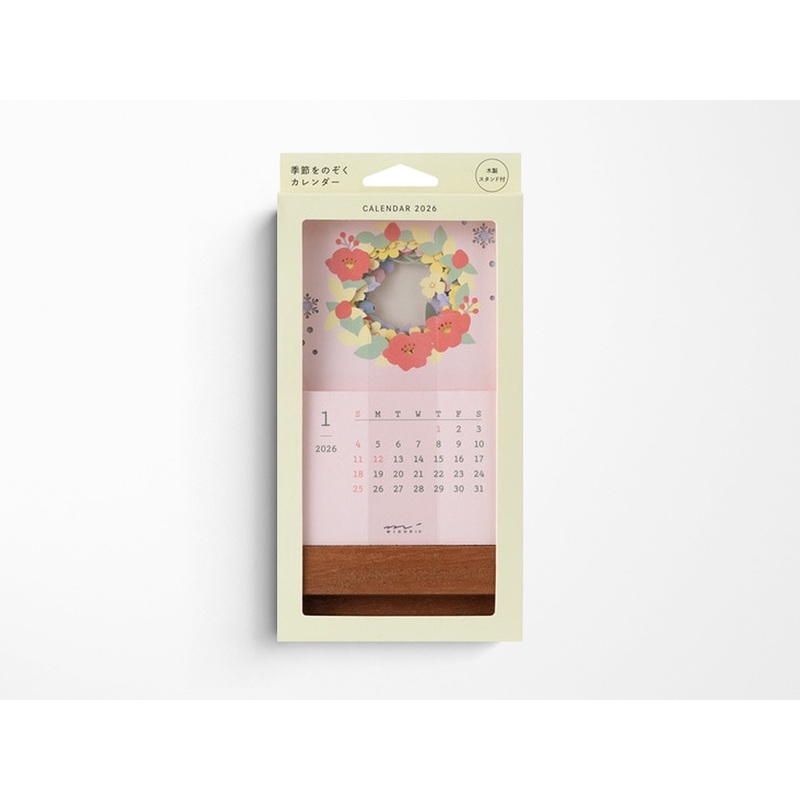 This desktop calendar features overlapping images that allow you to enjoy the four seasons. Each month’s design is delicately laser-etched, allowing you to feel the changing of the seasons as you flip through the cards. The textured wooden base blends seamlessly into any interior, making it ideal for space-saving use in your entryway, on your counter, or on your office desk. It comes in a box, making it an ideal gift. After a year of use, you can separate the cards and use them as cards. Like seasonal ornaments, this item can add a touch of seasonal charm and joy throughout the year.