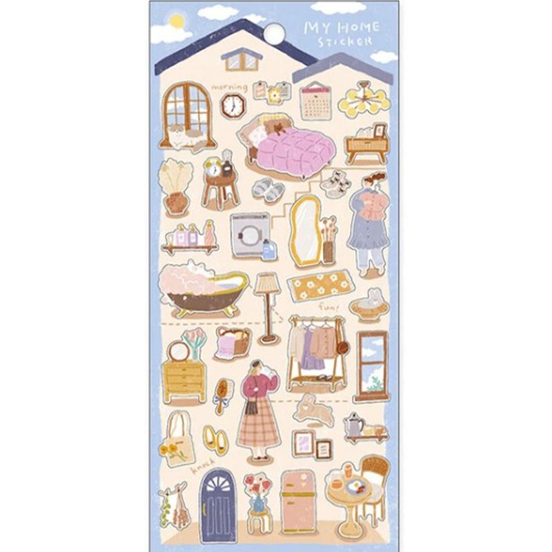 These illustration stickers depict time spent in the house.On the base paper, different shades of the sky represent different times of the day and different weather conditions.We hope you will enjoy different situations with each pattern of stickers.— MY HOME / MY HOME / MY HOME STYLEmy home / my home / my home sticker / my home sticker / my home sticker