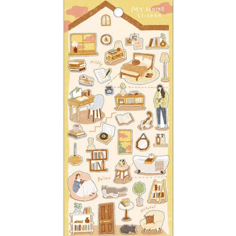 These illustration stickers depict time spent in the house.On the base paper, different shades of the sky represent different times of the day and different weather conditions.We hope you will enjoy different situations with each pattern of stickers.— MY HOME / MY HOME / MY HOME STYLEmy home / my home / my home sticker / my home sticker / my home sticker