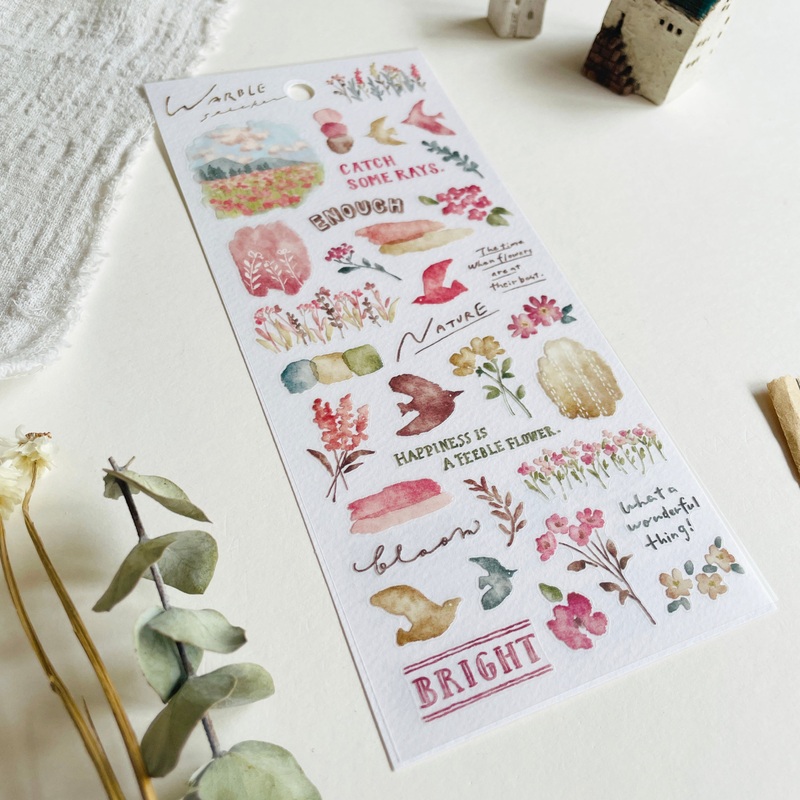 This Mindwave Warble Sticker Sheet is a dream come true for any fan of water color art! Get the idyllic look of a lush landscape in a convenient sticker form - perfect for sprucing up planners, envelopes, and journals! Get creative in the most picturesque