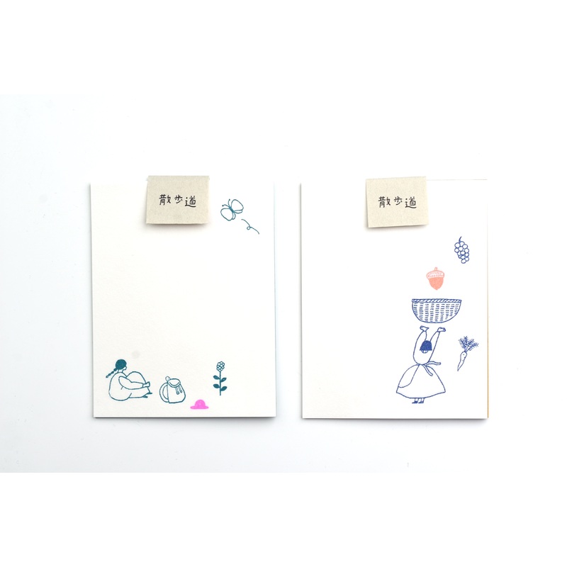 Mizushima collaborated with Japanese illustrator, nectie to create these mini lettersets. The designs are based off of scenes you might find on a stroll down a woodland path.