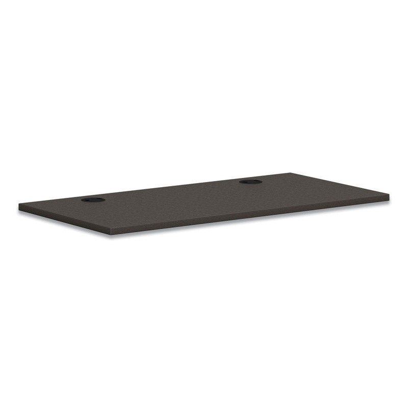 Add to a Mod base to create a fully functioning table or desk. Durable laminate resists scratches, spills, and stains. Choose between modern or traditional laminate finish options. 48" Top. Top Color: Slate Teak; Color Family: Teak; Top Shape: Rectangular;