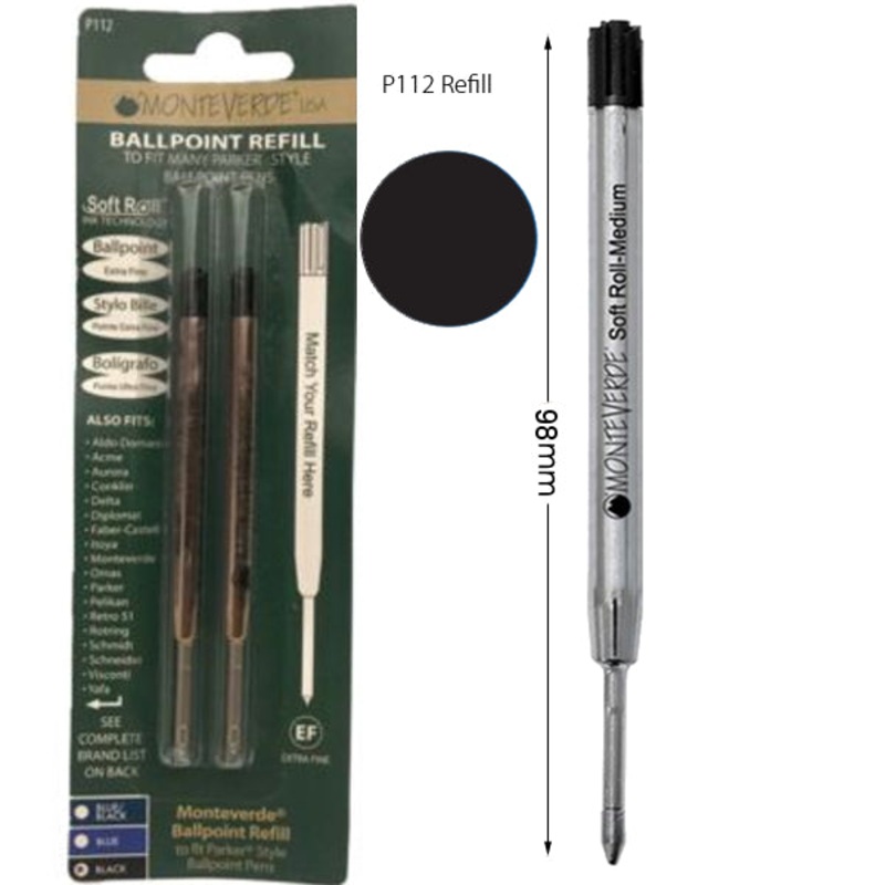 AUSTRALIA'S BEST PRICES! Pack of 2.The Monteverde Black Soft Roll Extra Fine Ballpoint refill is the ultimate in ballpoint writing experience. It offers the latest technology for the smoothest writing experience. It is a low viscosity ink which glides over