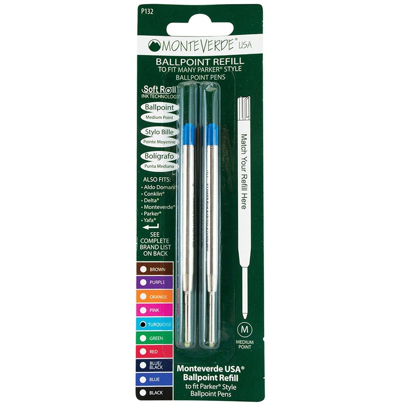 Monteverde Parker Style Soft Roll Ballpoint Refill – Medium – Turquoise – 2 refills per pack.