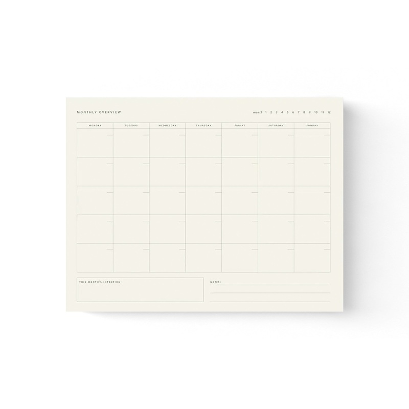 Outline yourmonth ahead with our thoughtfully designedmonthly overview notepad. This notepad will help you to feel peace and clarity throughout yourmonth by helping you prioritize a few key tasks to focus on each day.