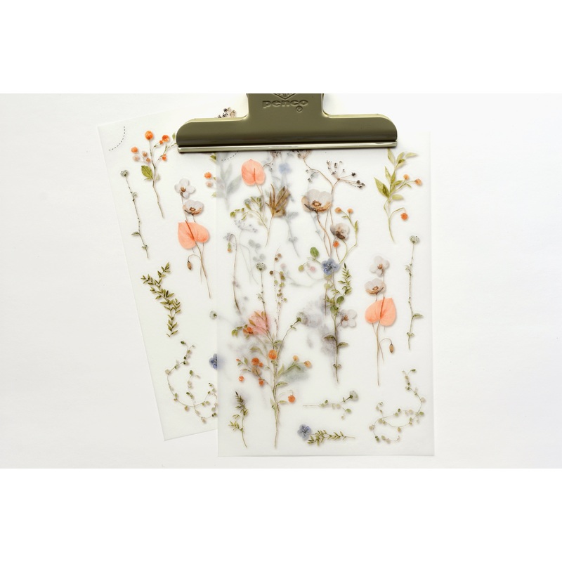 MU Print-On Stickers come with 2 sheets of different sticker designs and are perfect for decorating and personalizing. They can be used on paper, wood, glass and other smooth surfaces. Overlay the stickers in your journal, on cards, or other objects to create your own designs. To use, cut out the desired patterns, separate the back paper, position it on the surface you wish to print on, use a hard edge such as the wooden transfer stick to scratch all over the design and then tear off the plastic layer to reveal the finished print-on.