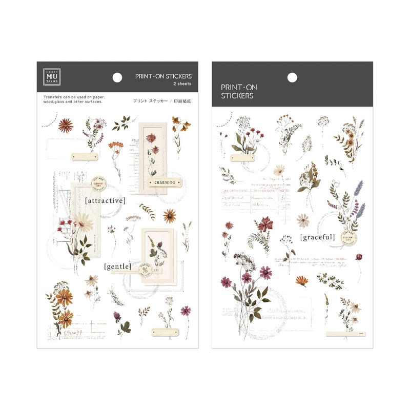 MU Print-On Stickers come with 2 sheets of different sticker designs and are perfect for decorating and personalizing. They can be used on paper, wood, glass and other smooth surfaces. Overlay the stickers in your journal, on cards, or other objects to cre