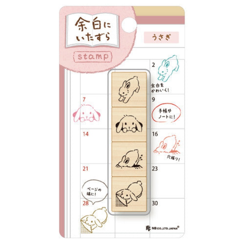 NB Wooden Stamps - Doodles in the Margins - Rabbit (Yohaku ni Itazura) means Doodles in the Margins, a fitting name for this playful stamp series. This Rabbit-themed set includes 4 compact wooden stamps featuring a cute rabbit in various poses. Whether you