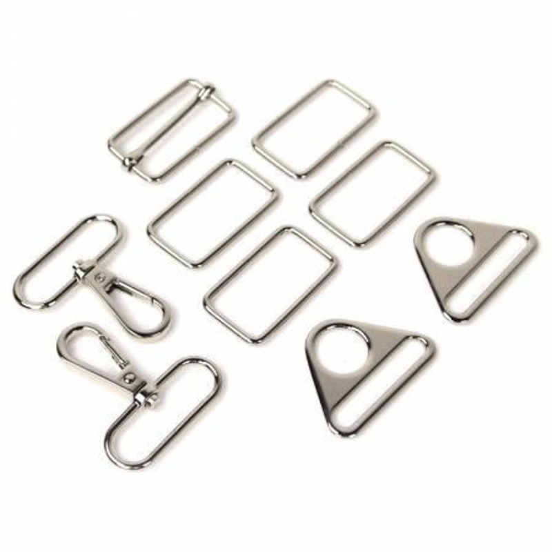 All of the hardware you need to complete one Townsend Bag will be included. Kits are available in silver, gold, antique, gunmetal black, and copper finish.Included Hardware:- Four 1.5in Rectangle Rings- Two 1.5in Swivel Hooks- Two 1.5in Triangle Rings- One