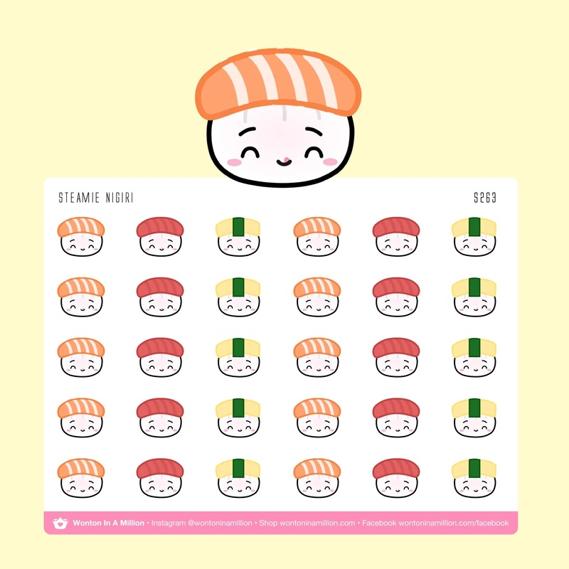 Decorate your planners, scrapbooks, bullet journals and more with this adorable sticker sheet featuring the Shrimp Dumpling family! It’s said that to judge the skill of a dimsum chef, you look at how they’ve made a shrimp dumpling: its skin should be translucent but not break when you pick it up, and the skin shouldn’t stick to the steamer or to the other shrimp dumplings in the basket. Shrimp dumplings are a MUST HAVE at dimsum (and in your sticker collection!)
