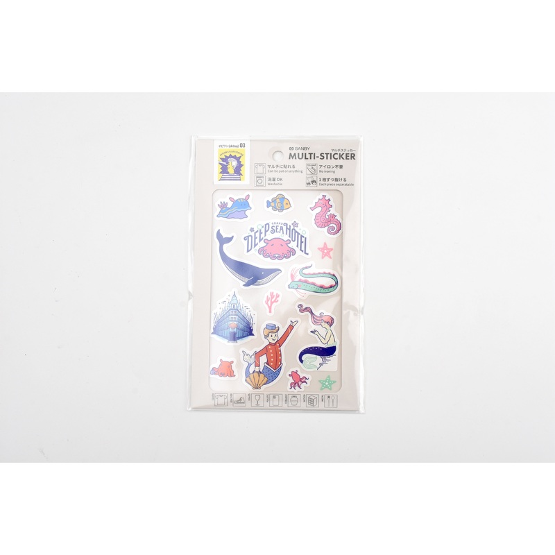 Ob1 x SANBY Multi-Sticker - Deep SeaThese special adhesive stickers are designed to stick to a variety of surfaces, including fabric, metal, and plastic, without the need for ironing. They're washable and can be used repeatedly when applied to clothing or