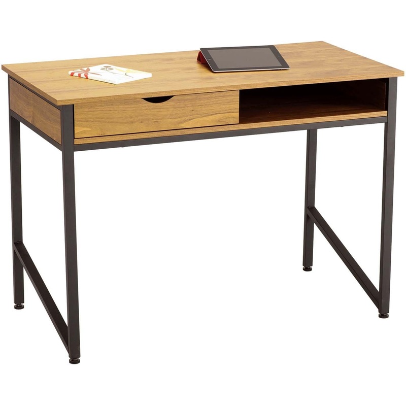 Features:Black frame with wooden veneer top, white frame with laminate topContemporary leg designDrawer and built-in storage compartmentSpecifications: Material: Wood Veneer;Powder Coat Steel FrameColor: Cherry; BlackAssembly Required: YesCable Management: