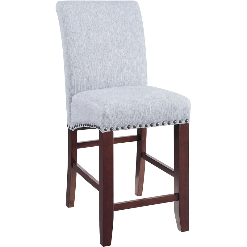 The Parsons 24″ dining stool is perfect for kitchen island and countertop dining. It features a tall, elegant padded back, a padded seat, and a footrest for exceptional comfort. The classic style is enhanced by a gently scrolled shoulder, antique bronze nail-head trim, and sleek profile. Made from solid wood legs, it ensures quality and durability. You can choose from supple faux leather or 100% polyester fabric, both of which are easy to clean. The stool is simple to assemble.