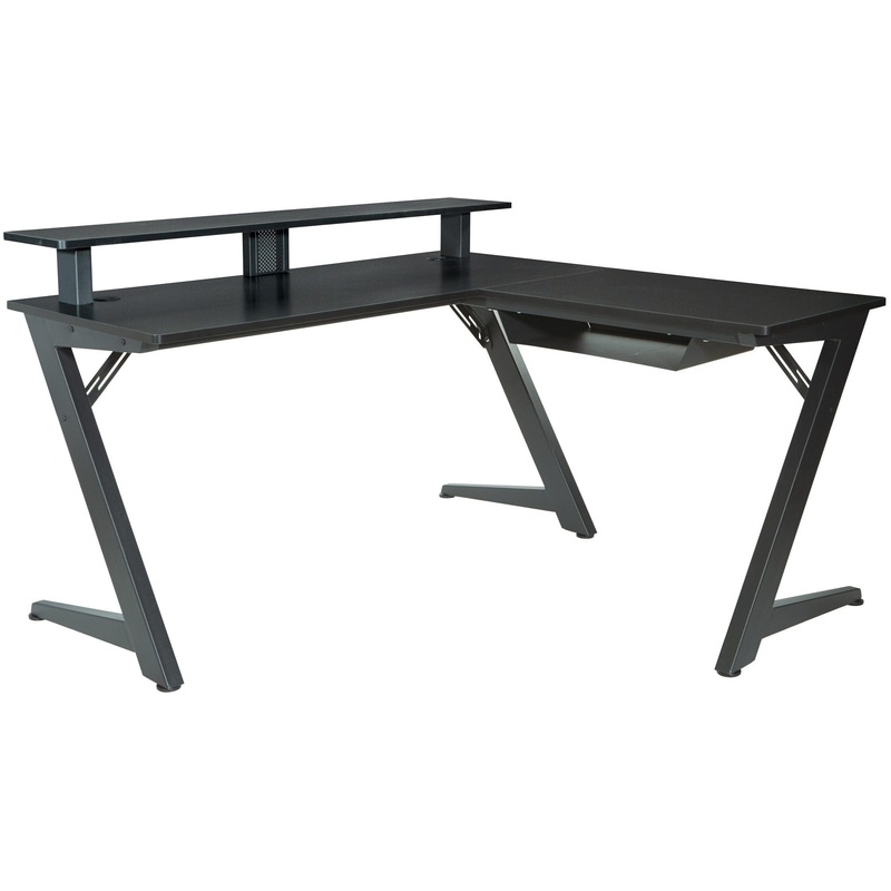 Transform your gaming experience with the Battlestation game desk avatar. The desk features a raised monitor shelf that is positioned for an optimal viewing height, reducing eye, neck, and shoulder fatigue. With its expansive L-shaped design, the desk prov