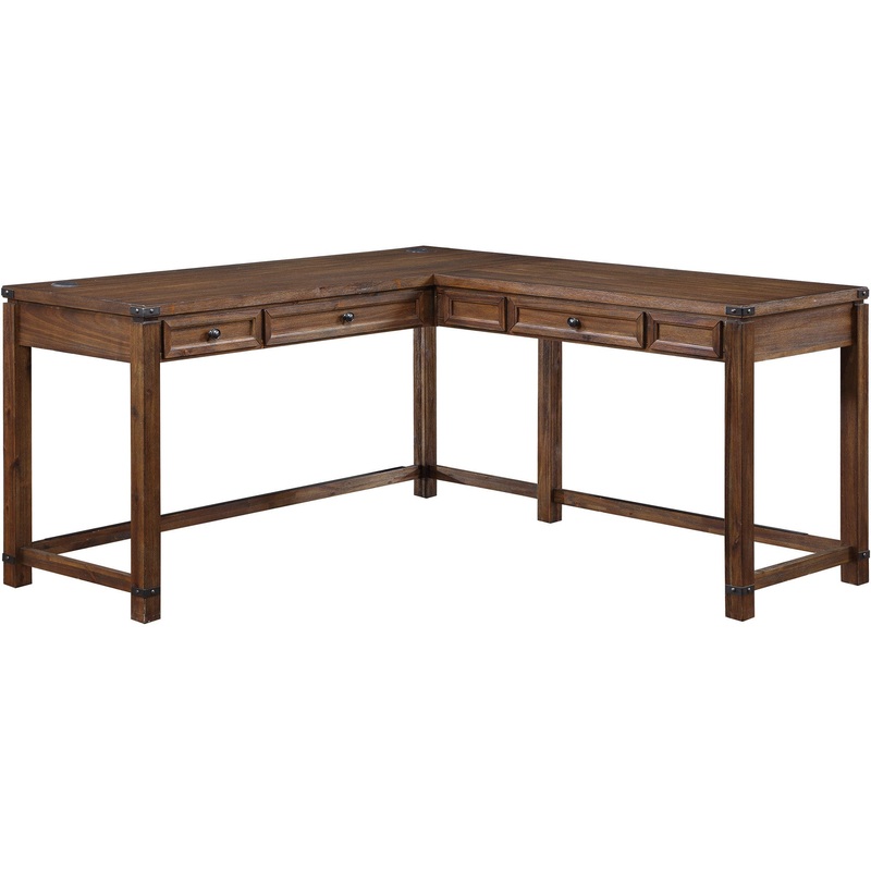 Looking for a stylish and functional home office? Consider the Baton Rouge L Desk. It features large drawers that keep your office supplies and accessories organized and within easy reach. The power-port drawer is perfect for charging your devices while keeping them out of sight. The hand-rubbed, burnished hardware adds a rustic-industrial charm that makes this desk suitable for any room in your home. Thanks to its sturdy, stringer design, it maintains an open and airy aesthetic. Plus, the expansive work surface provides ample space for your laptop and other essentials.