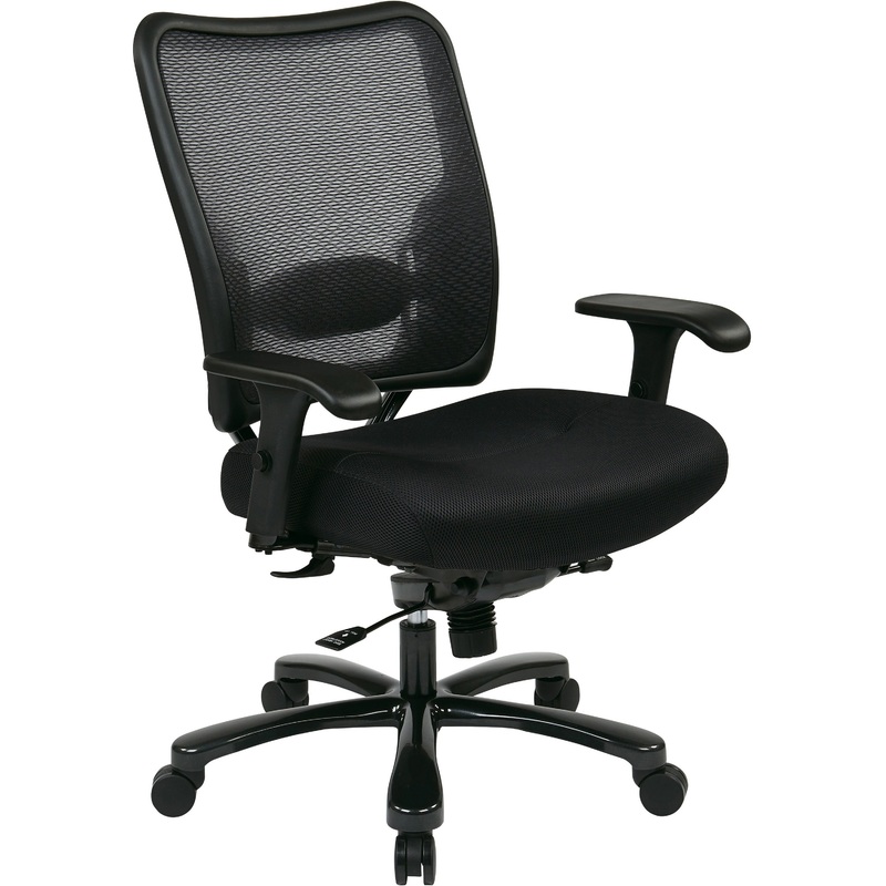 Executive Big and Tall Chair features a double air-grid back with adjustable lumbar support and thickly padded contoured mesh seat. Built-in arms adjust in height and width and feature soft polyurethane pads. Functions include one-touch pneumatic seat-heig