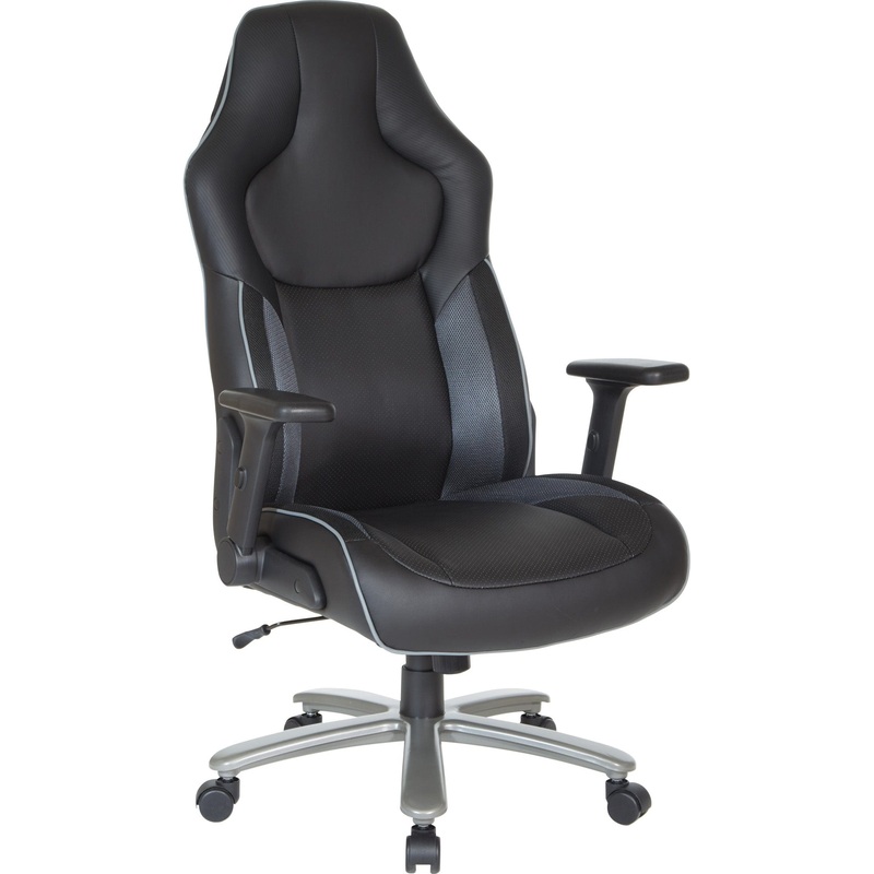 Enhance your gaming experience with the Big & Tall Gaming Chair, designed to provide you with hours of comfortable sitting. This chair has fully padded flip arms, a thickly padded, contoured leather seat, and a backrest with built-in lumbar support. It also features quick one-touch pneumatic seat adjustments and locking tilt control with adjustable tilt tension to keep you in the game. The contrasting color accents add an exciting visual appeal to the chair. The 5-star metal base and heavy-duty, dual-wheel casters are designed to move effortlessly and resist dirt and scuffs.