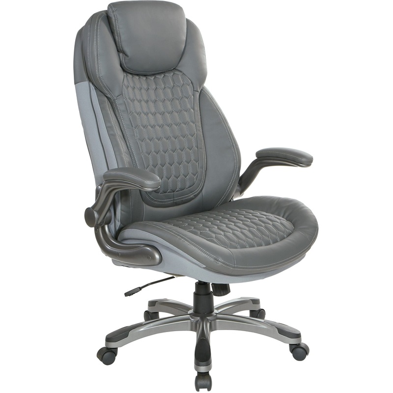 Office Star Bonded Leather Executive Chair with Padded Flip Arms [ECH620867] Grey
