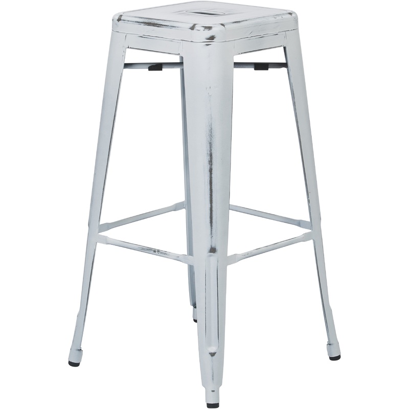 Features:Metal Seat and LegsBackless Style30" High Fully Assembled Intended for Residential Use OnlyOuter Materials: MetalFinish: Antique WhiteDimensions: Overall: 16.75"W x 16.75"D x 30.25"HSeat Size: 12"W x 12"D x 1.5"ThickSeat Height Min: 30.25"