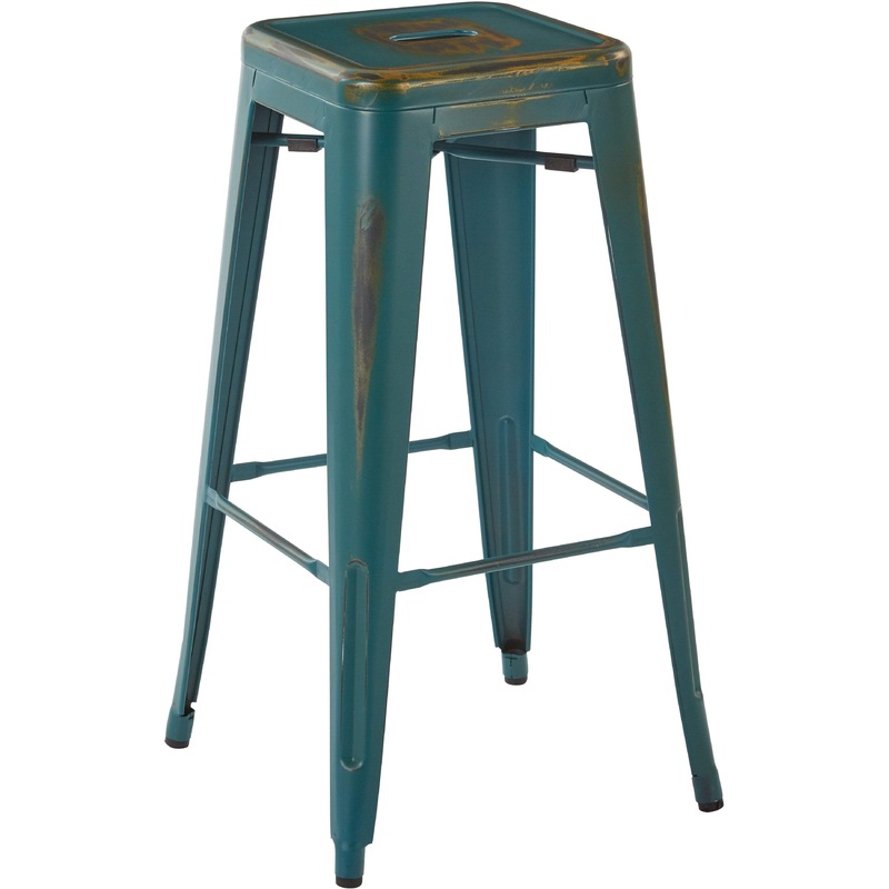 Office Star Bristow 30″ High Metal Stool, 4-Pack [BRW3030A4] Blue