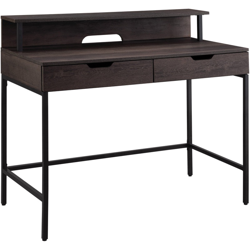The Contempo Desk is perfect for a busy home office, with its generous 40″ x 20″ work surface. The sturdy steel frame features refined lines that will make it the focal point of any room. There is an upper shelf designed to accommodate a monitor, and 2 desktop drawers to store all your small accessories. It is available in white laminate with a white metal frame or brown woodgrain laminate with a black metal frame. Assembly is required.