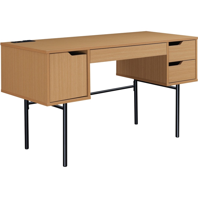 Enjoy both form and function with the Denmark Executive Desk. Large drawers and storage shelves keep office supplies and accessories organized and close at hand. THe AC power-port keeps devices charged up and stowed. A natural, clear woodgrain finish paired with a strong, lightweight steel frame will showcase Scandinavian charm and maintain an airy aesthetic. The expansive work surface gives ample space for your monitor, laptop, and favorite accessories. Enjoy simple assembly with the Lockdowel fastening system, which is invisible, creating a tight joint and a finished look, designed to simply slide components into place for quick, sturdy assembly every time.