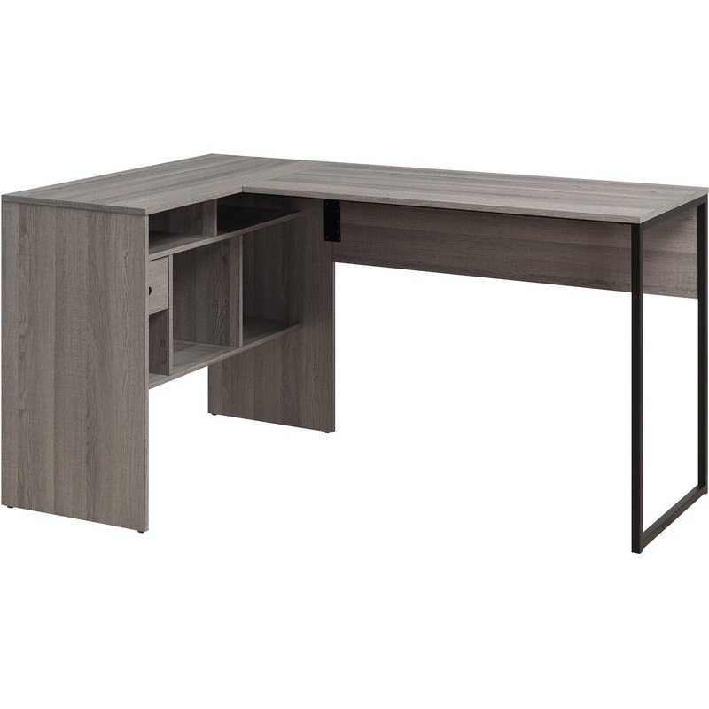 The Hagney Lane desk has an expansive L-shaped design and modern style which makes it an ideal option for your home office. The sturdy metal frame and Farm Oak finish give it a durable and stylish look. It also includes an accessory drawer and under-desk storage to keep your bins, books, and office supplies organized and accessible.