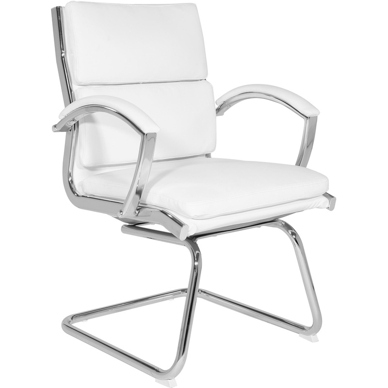 The Work Smart Mid-Back Faux Leather Visitor's Chair is a stylish seating option that makes a statement. It features a thickly padded seat and backrest for added comfort and comes with built-in lumbar support. The chair is upholstered in faux leather and h