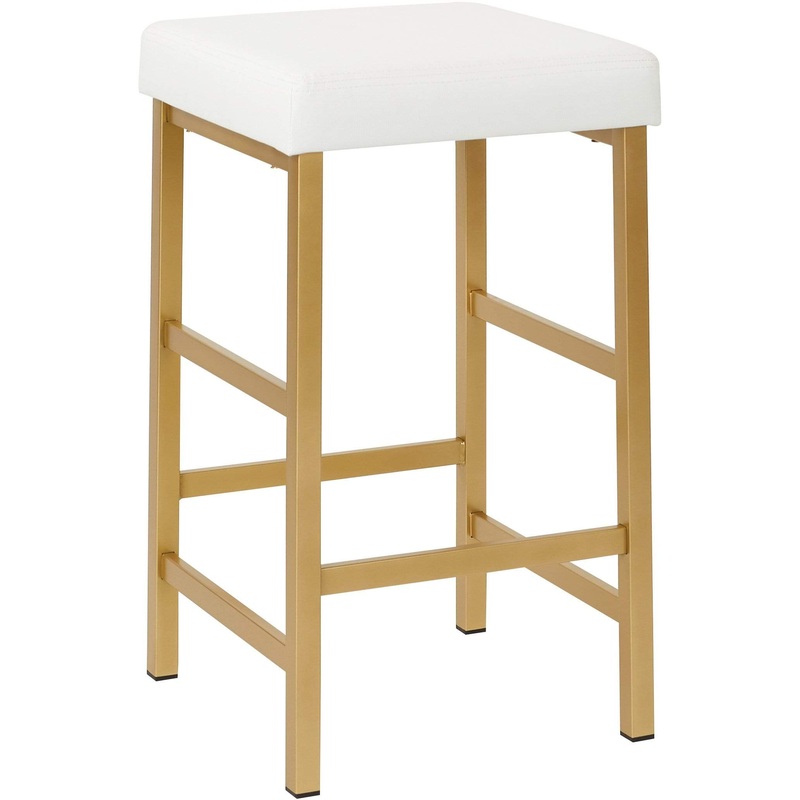 Glam modern styleVinyl 3 thick cushion seatGold finish legs with rubber foot caps to protect flooringCounter heightFully assembledFor Use Type: Residential Use OnlyColor: WhiteFabric Info: (-11) WhiteWeight capacity: 200Greenguard Certified: NoShips in: 2-