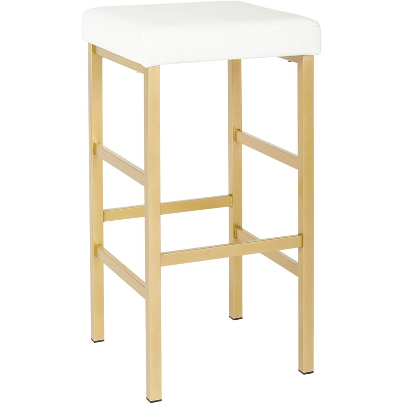 Glam modern styleVinyl 3 thick cushion seatGold finish legs with rubber foot caps to protect flooringBar heightFully assembledFor Use Type: Residential Use OnlyColor: WhiteFabric Info: (-11) WhiteWeight capacity: 200Greenguard Certified: NoShips in: 2-3 bu