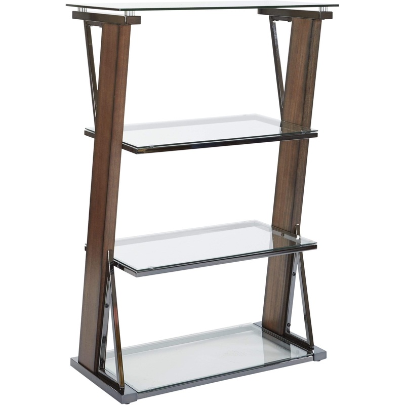 Contemporary blend of Black Nickel plated metal and Carmel stained wood4 functional tempered glass shelves set in metal frames for strengthEasy to assembleIntended for residential use onlyFor Use Type: Residential Use OnlyColor: CarmelWeight capacity: 30Gr