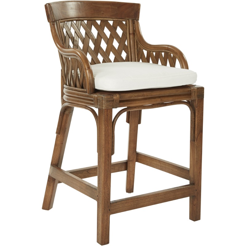 Bring comfort to your dining room with the Plantation counter stool. This stool takes inspiration from the jungle and features a rattan wicker frame with woven back panels of embossed bamboo. Solid wood support and a cotton duck foam cushion make this stoo