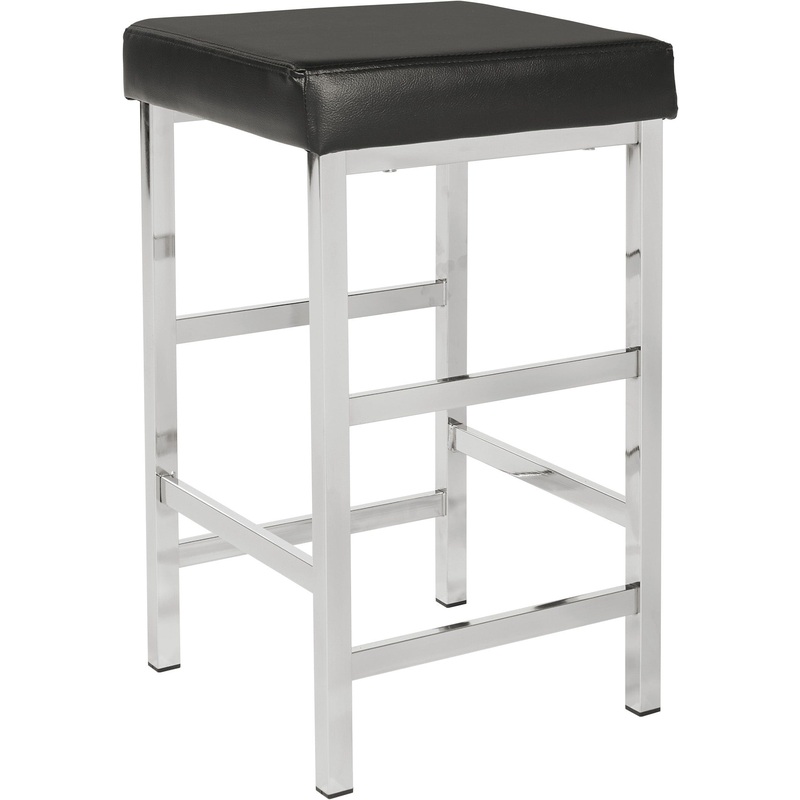 Create dramatic seating at your counter, kitchen island, or casual eating area with our Finn backless counter height bar stool, offering an elegant silhouette with a modern, sleek profile that makes a stunning statement in any dining or bar area. A thick, generously padded seat provides hours of relaxed entertainment for your guests. Easy-care faux leather upholstery cleans up with just a quick wipe. A durable metal frame in polished chrome adds beauty and sophistication. Conveniently arrives fully assembled.