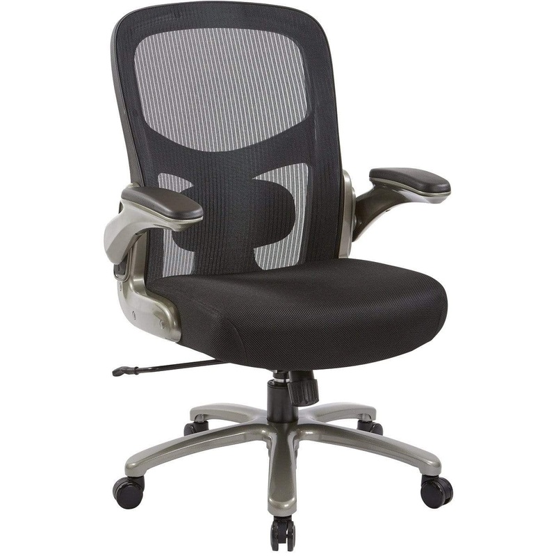Features:Thick padded contour black mesh fabric seat & mesh back with adjustable lumbar supportMemory foam seatOne-touch pneumatic seat height adjustmentLocking tilt control with adjustable tilt tension2-way adjustable flip arms with 3-position adjustable