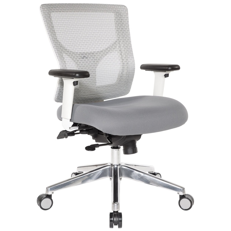 Work in comfort and style in the new ProGrid Mid-Back Chair. Perfect for workers who spend extended periods at their workstations, this intelligently designed chair provides comfort and support to your body and mind. The amazingly strong yet lightweight, breathable ProGrid white mesh back conforms to your bodys unique contours with added adjustable lumbar support, and high-quality fabric with molded foam affords hours of cozy seating, minimizing fatigue and alleviating pressure on the spine.