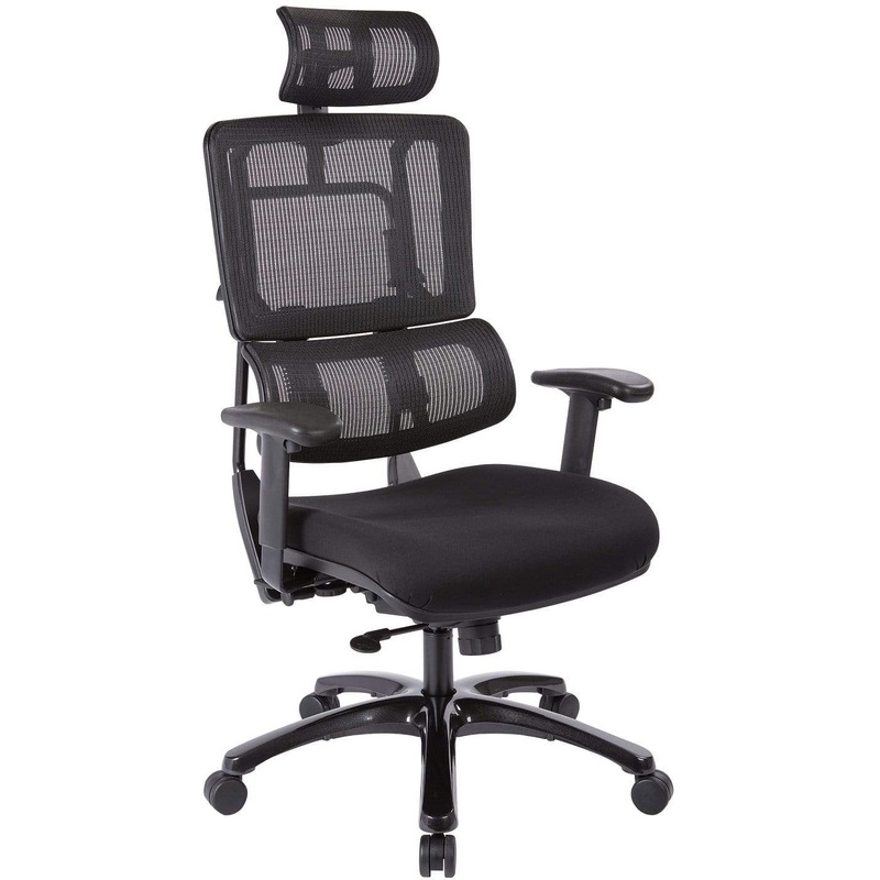 Breathable Vertical Mesh Back with Steel Frame PostAdjustable Height BackSelf-Adjusting Lumbar Support2-to-1 Synchro Mechanism with 3 Position Lock and Seat SliderHeight and Width Adjustable Padded ArmsHeavy Duty Aluminum Coated BasePatent PendingHeadrest