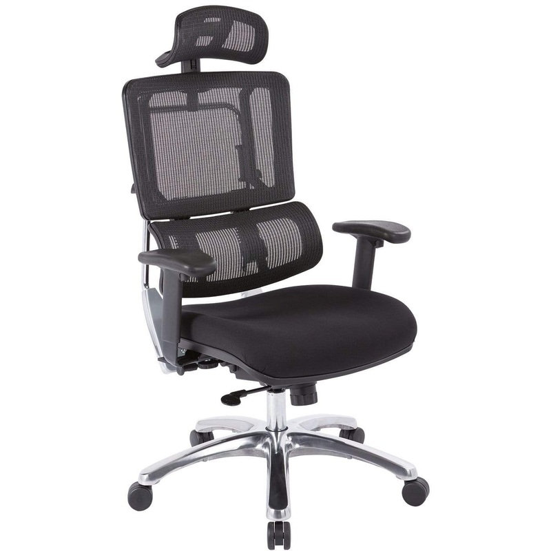 Breathable black vertical mesh back with adjustable lumbar supportOne-touch pneumatic seat height adjustmentHeight adjustable back with dual steel frame postHeight adjustable armsSeat slider2-to-1 Synchro tilt control with 3-position lockPolished aluminum