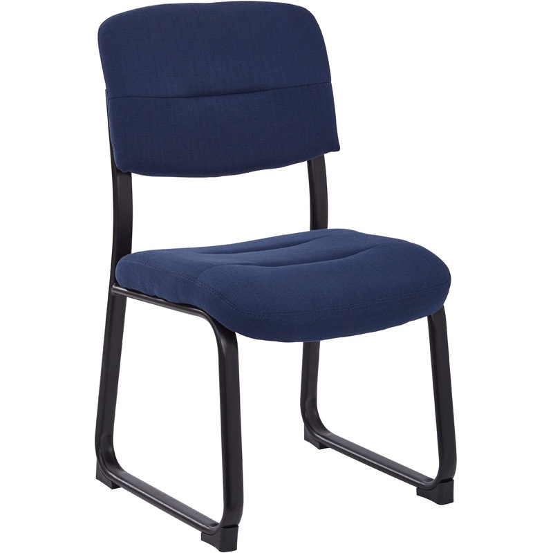 Features:Contoured seat and backBuilt-in lumbar supportArmlessCommercial grade fabricHeavy-duty sled base Fabric: Indigo woven fabricFrame: BlackDimensions: Overall: 20.25"W x 22.5"D x 34.75"HSeat Size: 20.25"W x 17.5"D x 2.25"ThickBack Size: 19.75"W x 12"