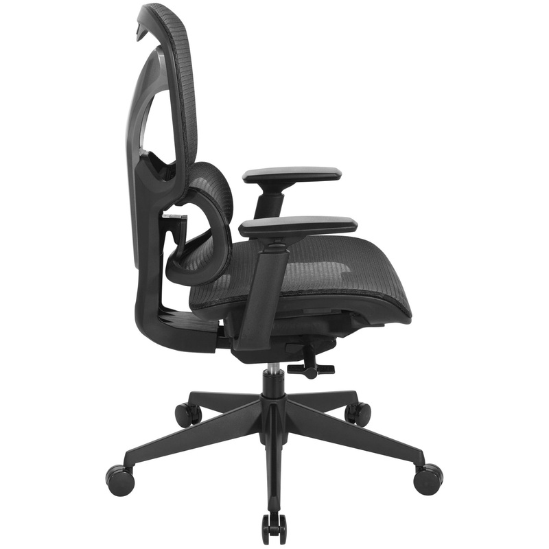 Upgrade your office with our stylish mesh manager’s chair with exceptional features and pronounced lumbar support. The breathable black mesh seat and back will help you stay cool and focused, while the armrests can be adjusted in three different ways. Thanks to the one-touch pneumatic seat height adjustment, you can easily find your perfect position. The chair also has a self-adjusting 4-to-1 synchro tilt, backrest lock, and anti-kickback mechanism for convenience. And with its heavy-duty angled nylon base and dual-wheel carpet casters, you can enjoy smooth mobility wherever you need to go in your workspace.