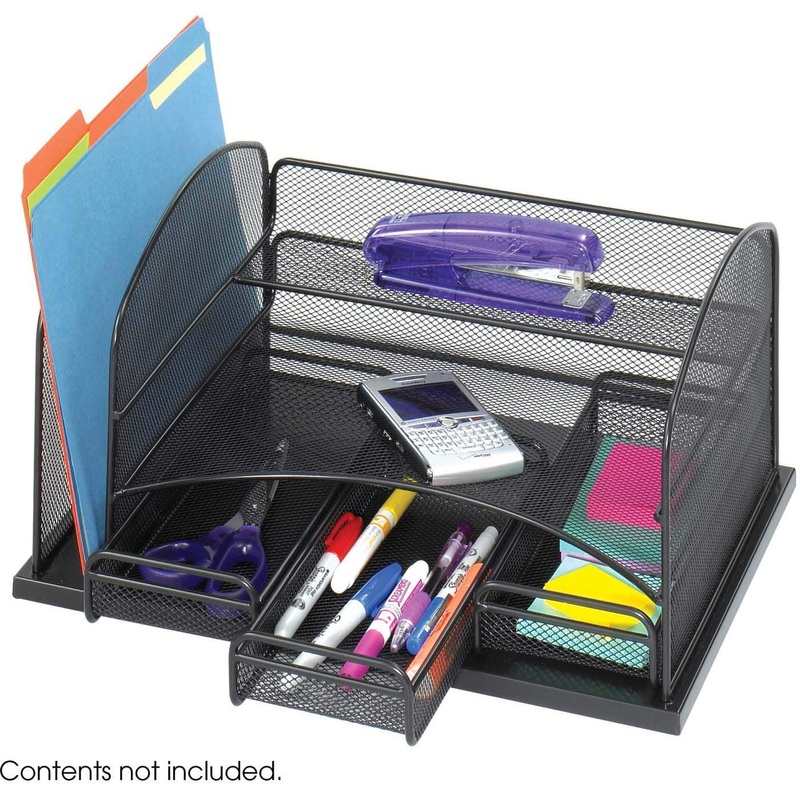 A messy, cluttered desk can make you crazy and can interfere with your ability to work efficiently. Clean up your act and add a contemporary look to your home or office desk with Safco's Onyx Desk Organizer. The black finish and steel mesh construction giv