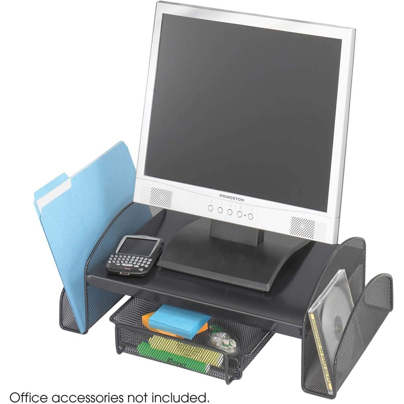 If you'd like to raise your monitor for additional comfort, you will love the Safco Onyx Mesh Monitor Stand. With two side compartments and a handy pull-out drawer, this monitor stand not only raises your monitor by four inches, but it also provides handy,